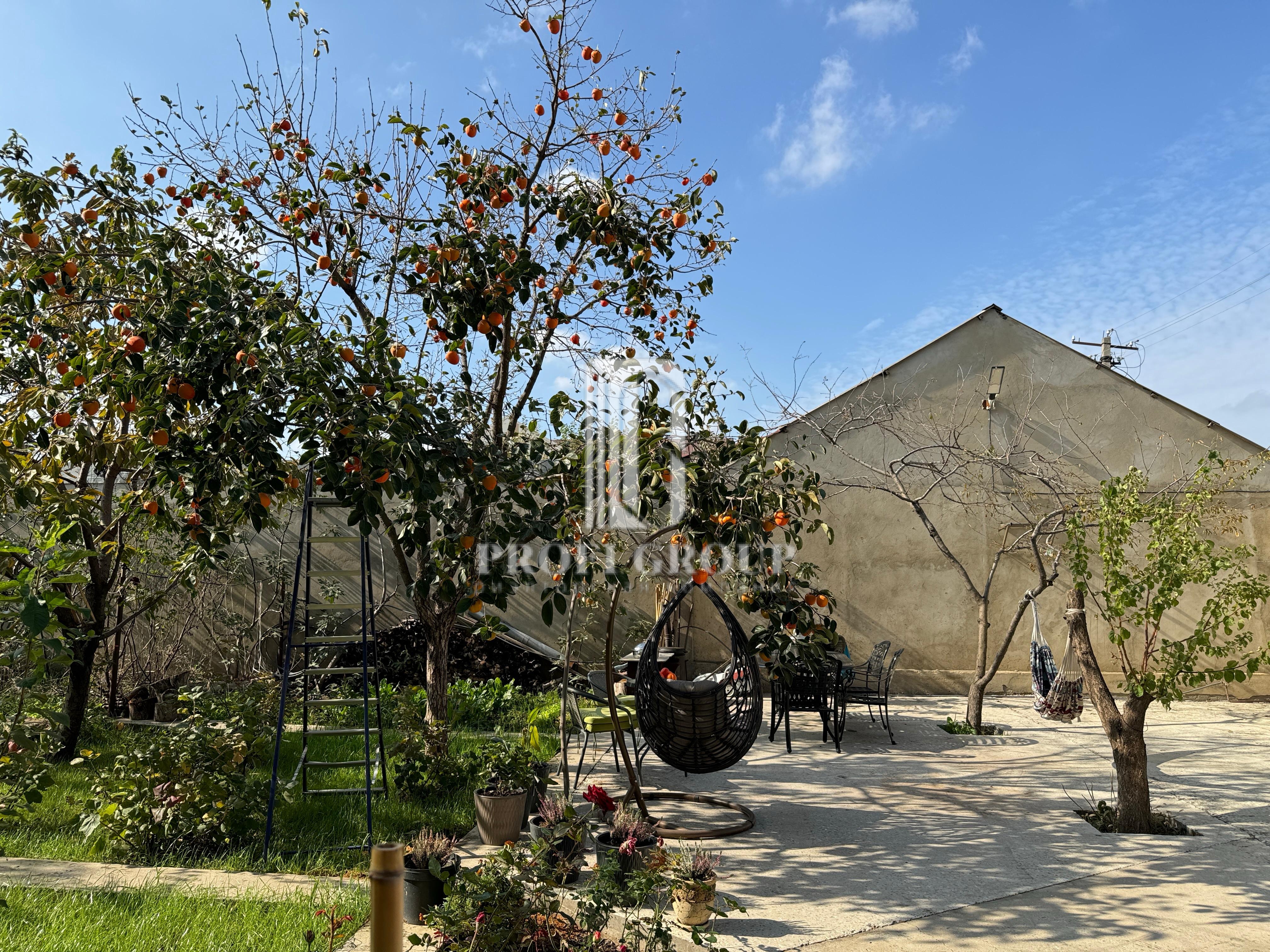 Дом построен на пяти сотках земли, очень красивый дизайн, по периметру двора зеленые насаждения, цветы, растения и деревья.