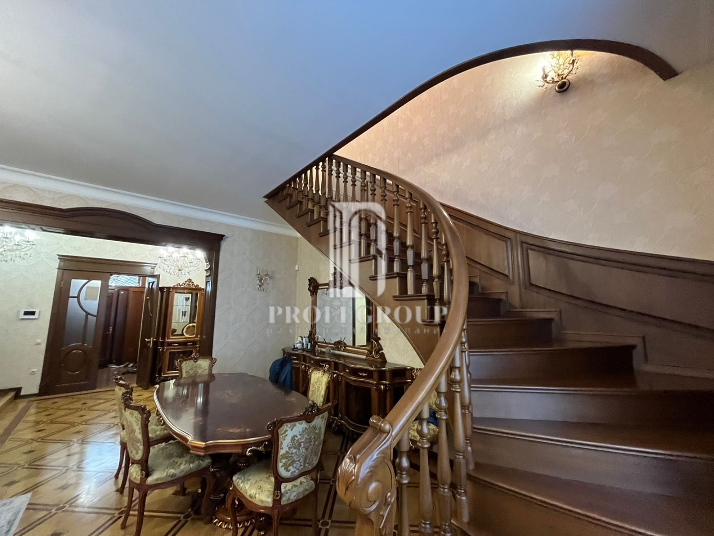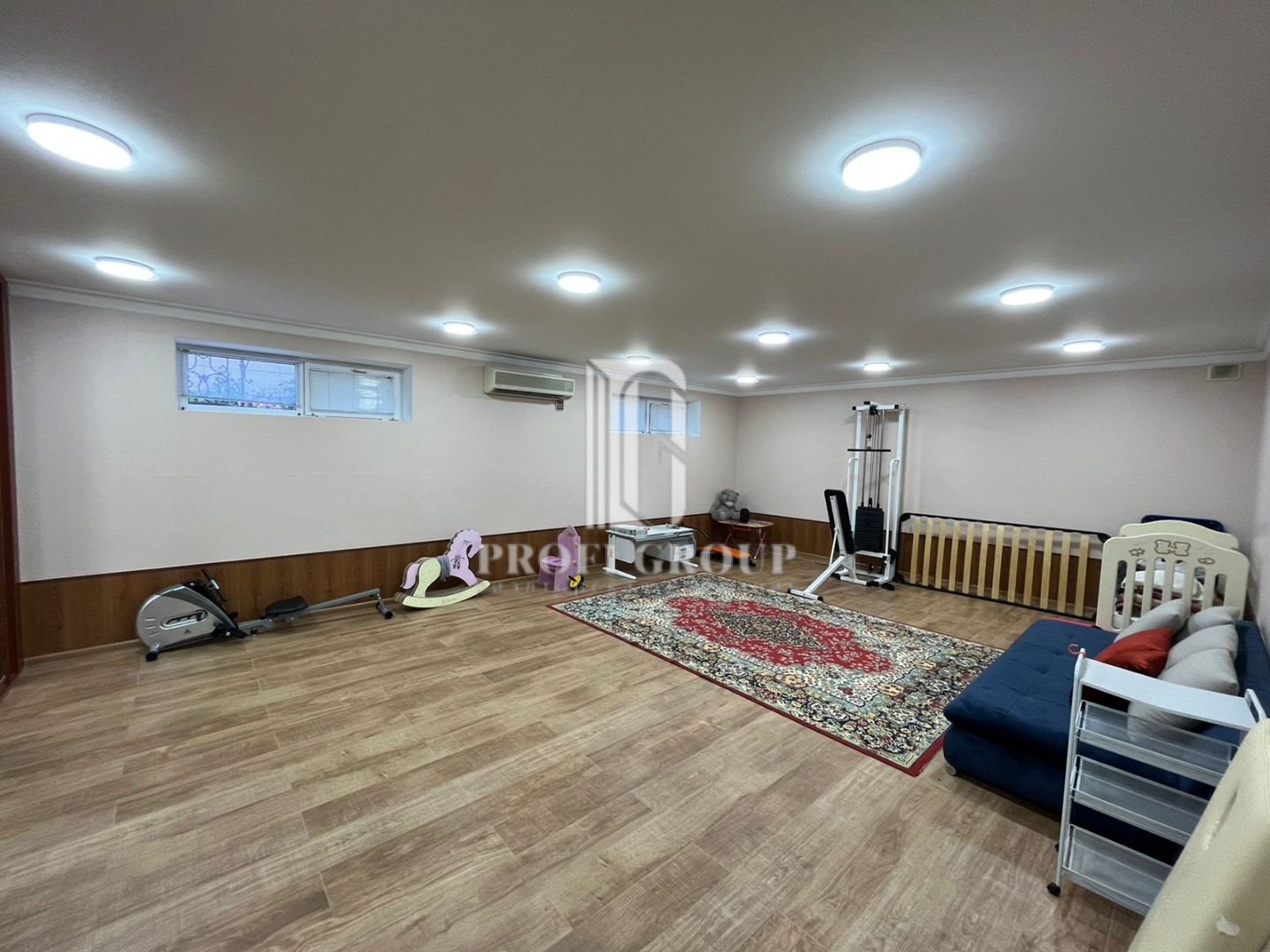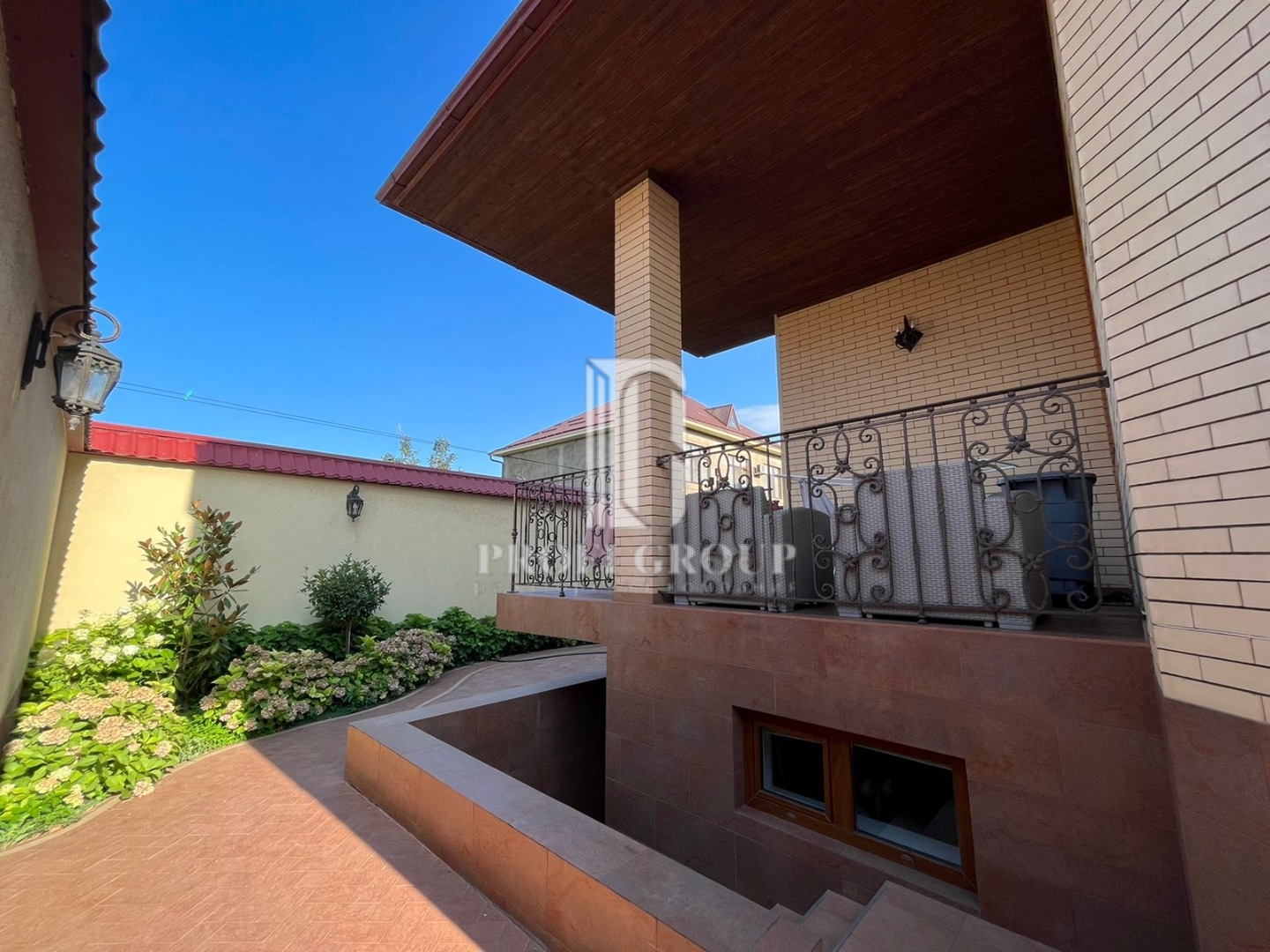 По всеми периметру видеонаблюдение, на цокольном этаже гараж, кухня, сан.узел, большие помещения.