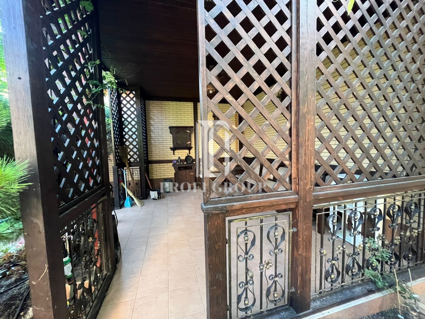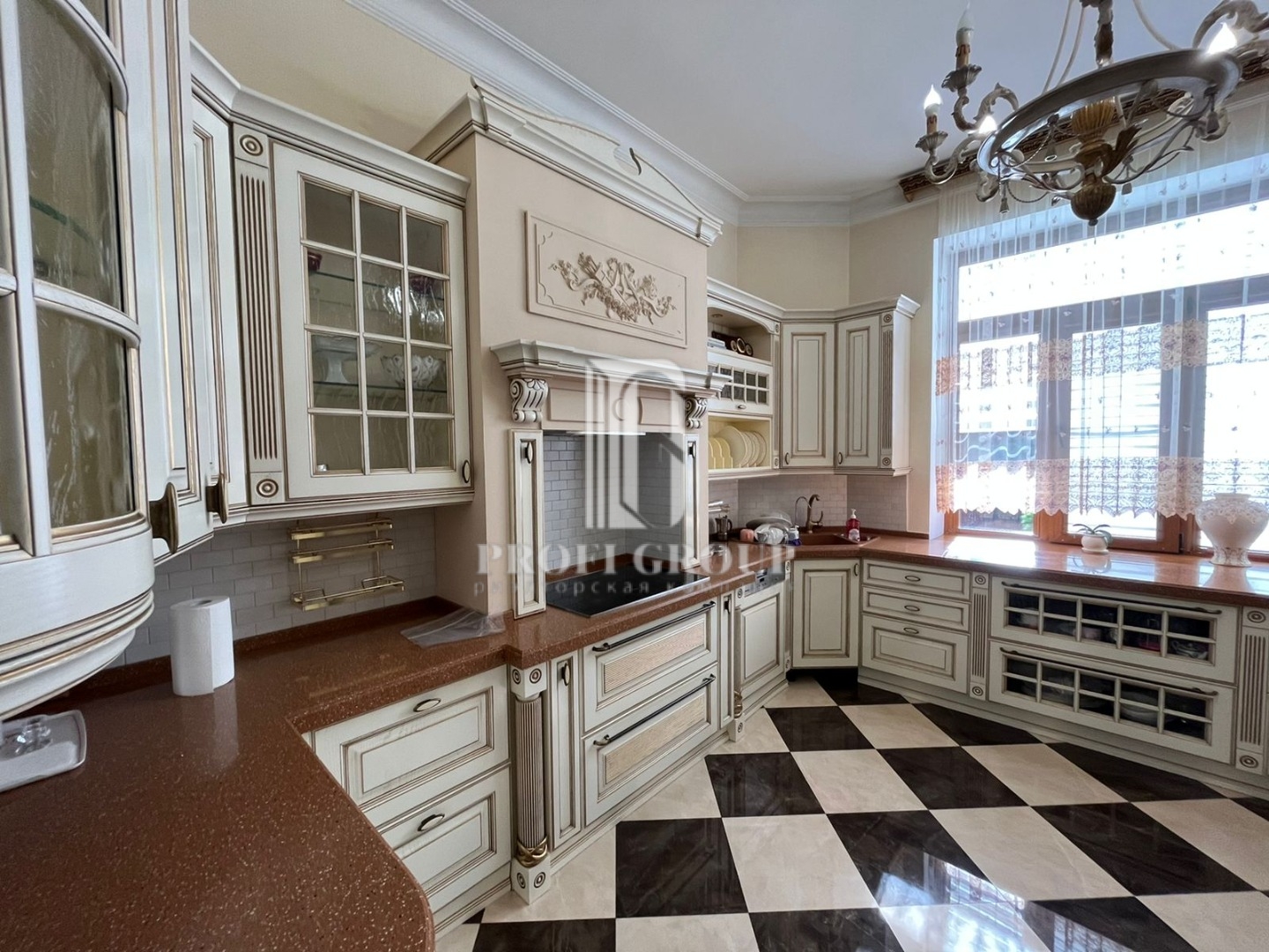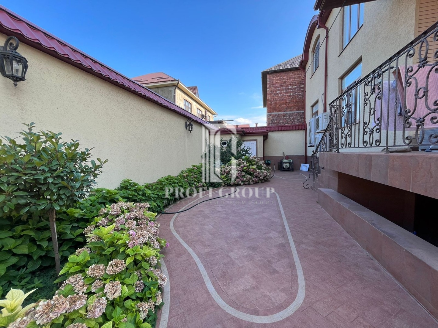 По всеми периметру видеонаблюдение, на цокольном этаже гараж, кухня, сан.узел, большие помещения.