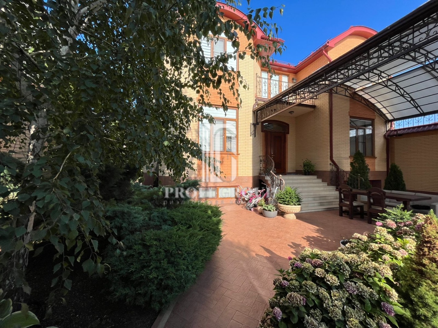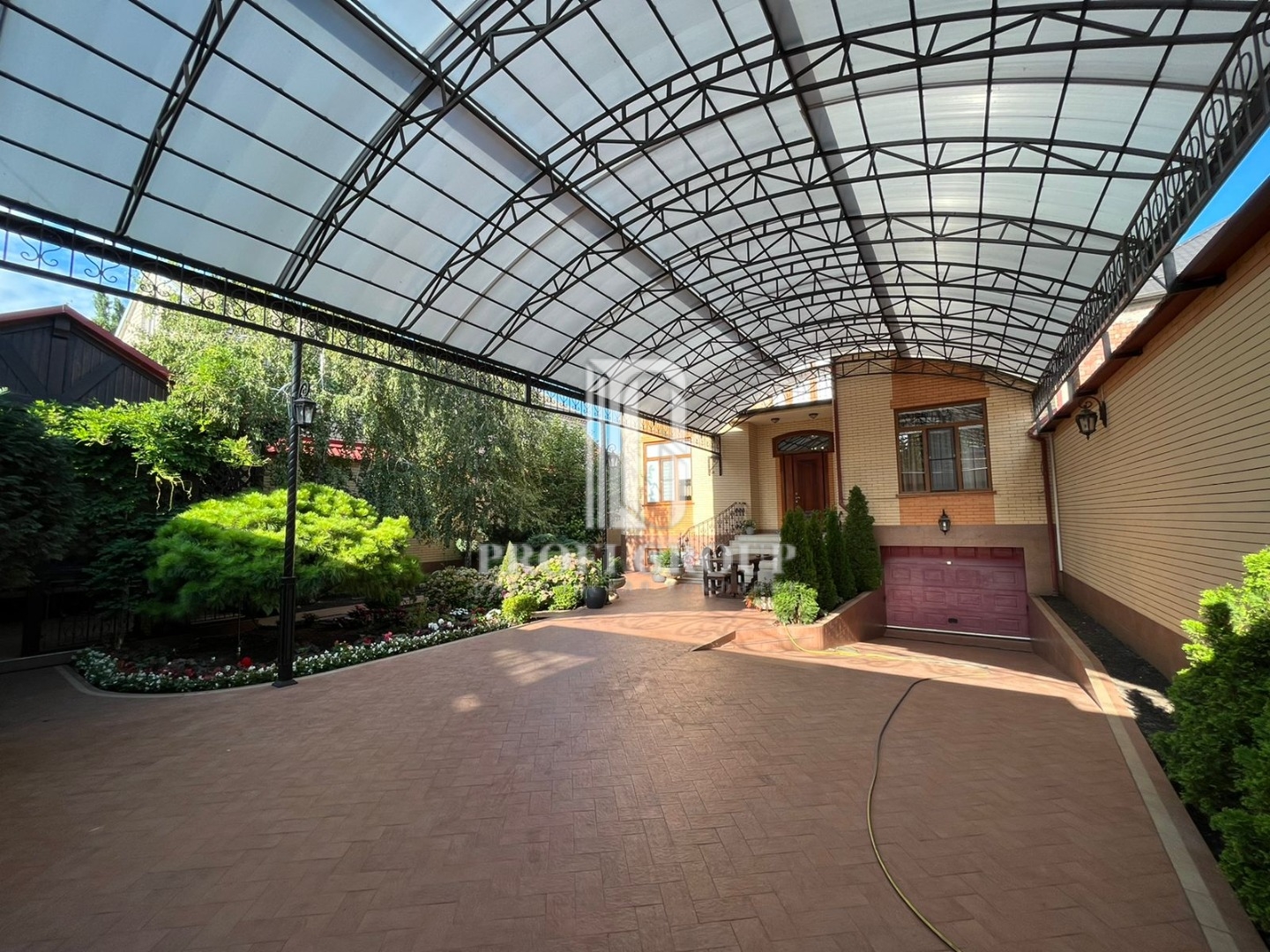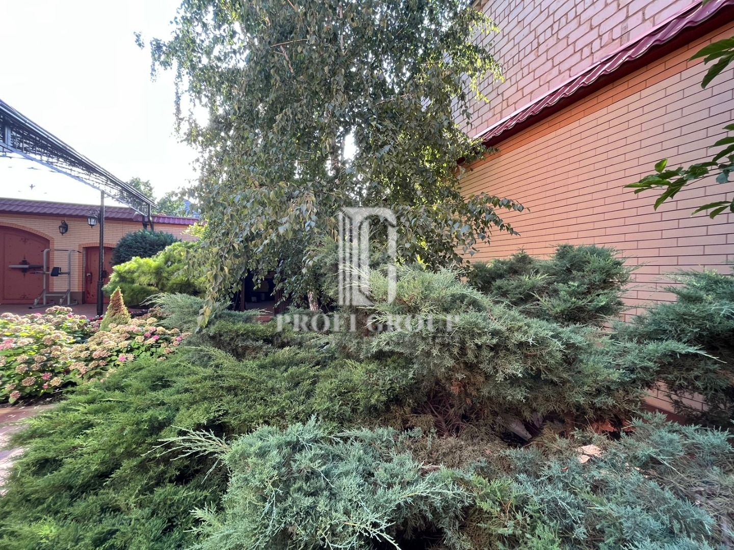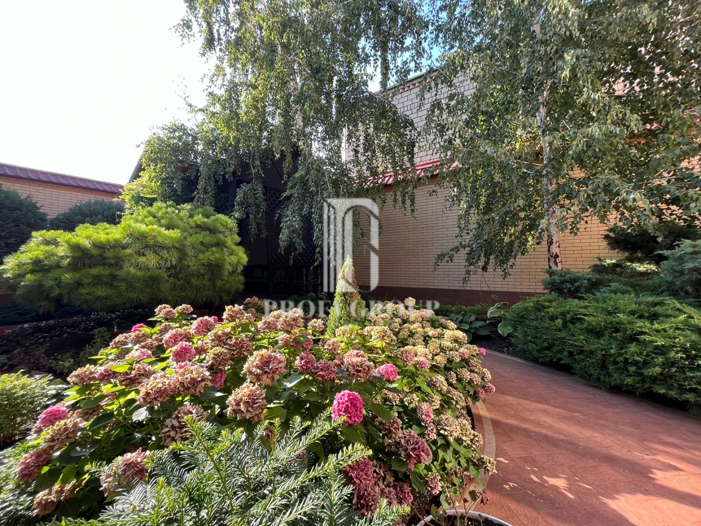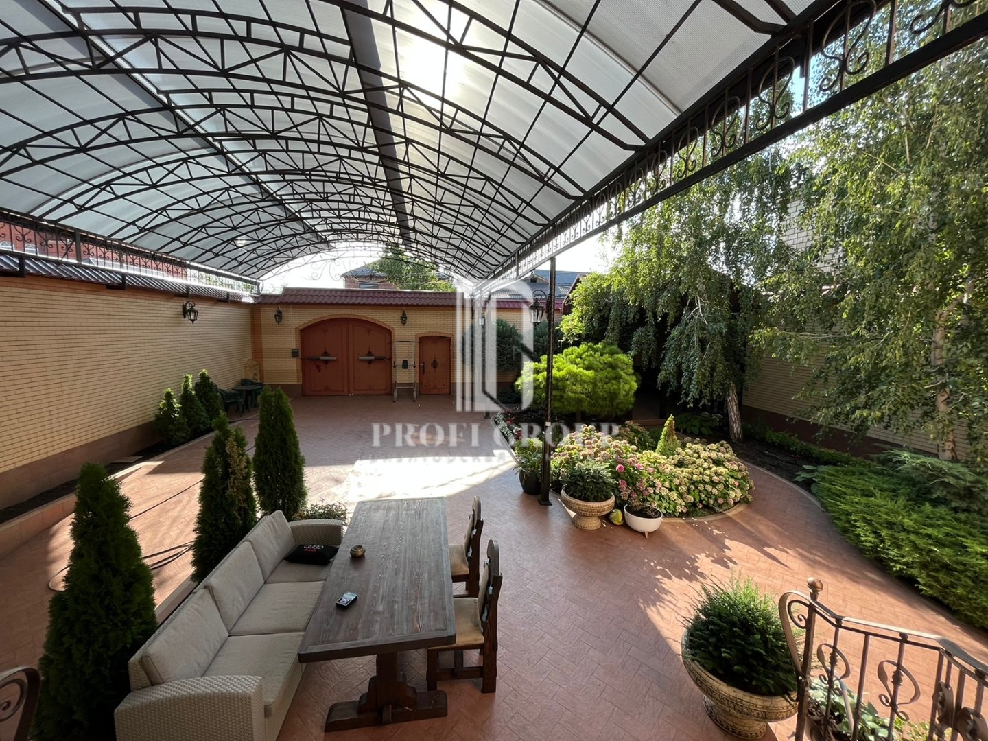 Прекрасный ландшафтный дизайн большого двора, беседка, кустарники, деревья и цветы, никого не оставит равнодушным.