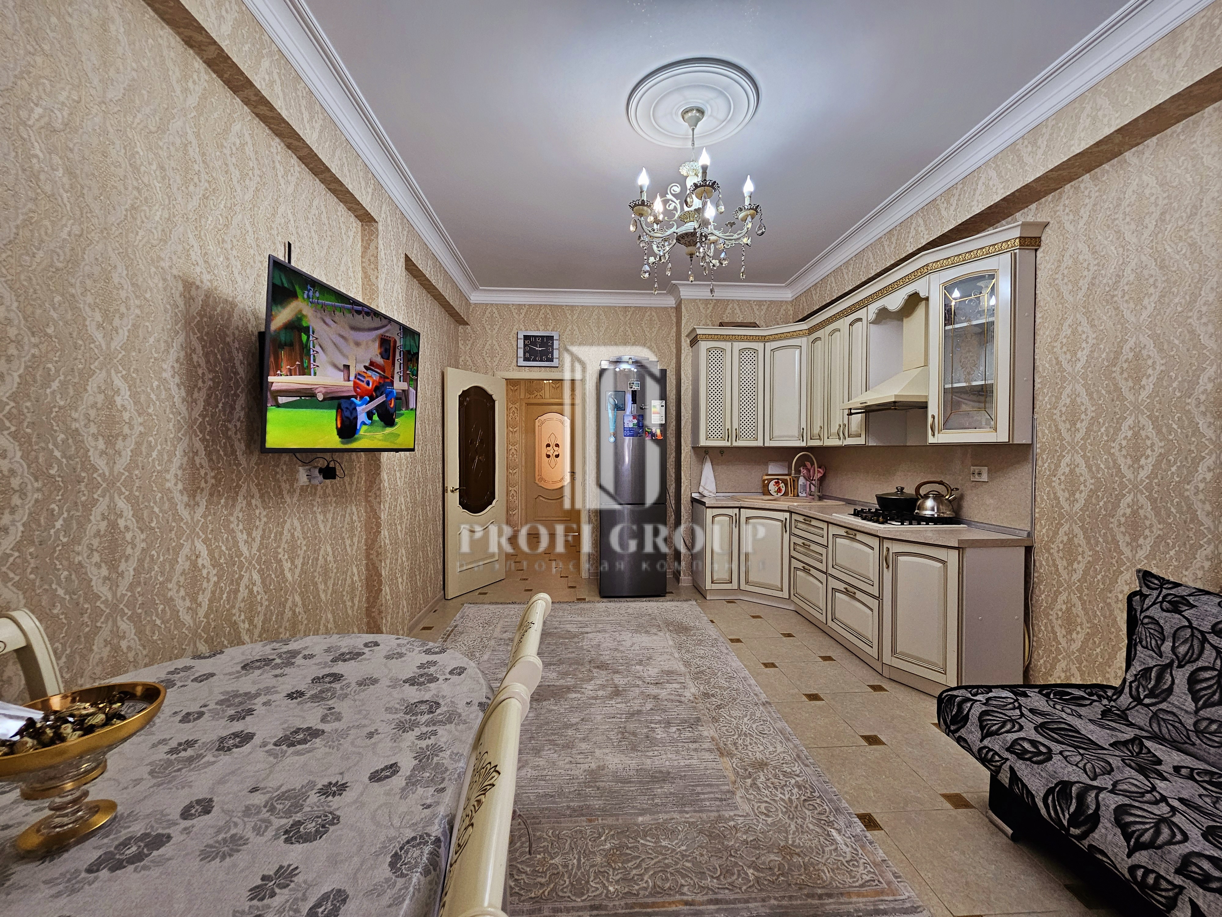 - просторная кухня перепланированна в кухню-студию гостинную;