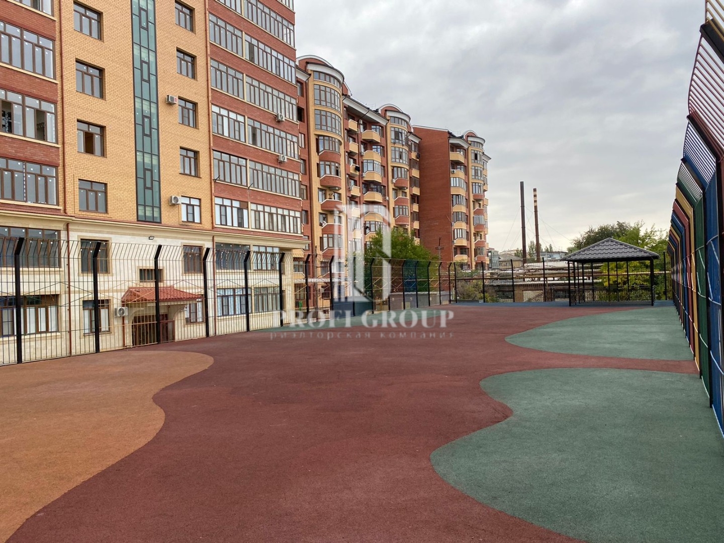 - уютный двор, современная детская площадка;